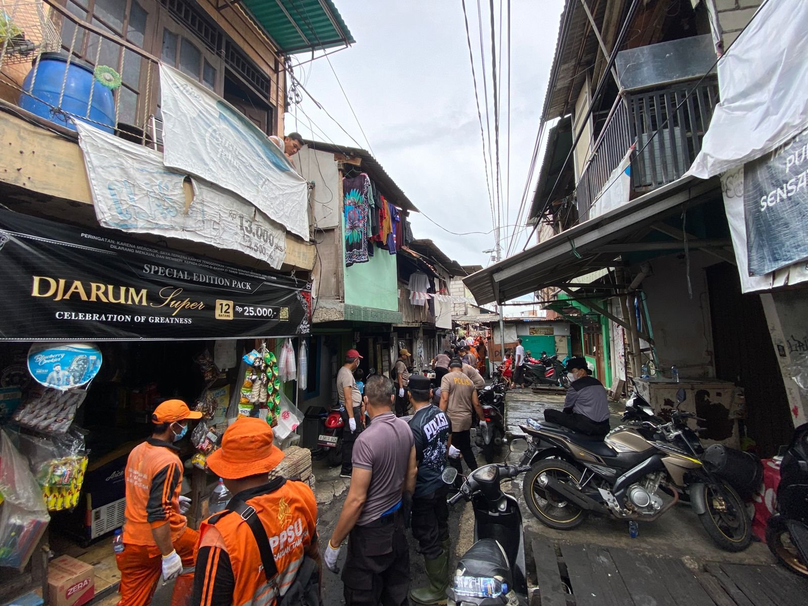 Kerja bakti ini melibatkan 270 personel gabungan, terdiri dari Polsek Tambora, Koramil 02/Tambora, Satpol PP, Damkar, BPBD, pasukan kebersihan (Oren, Biru, Kuning, Hijau), serta aparat kecamatan.