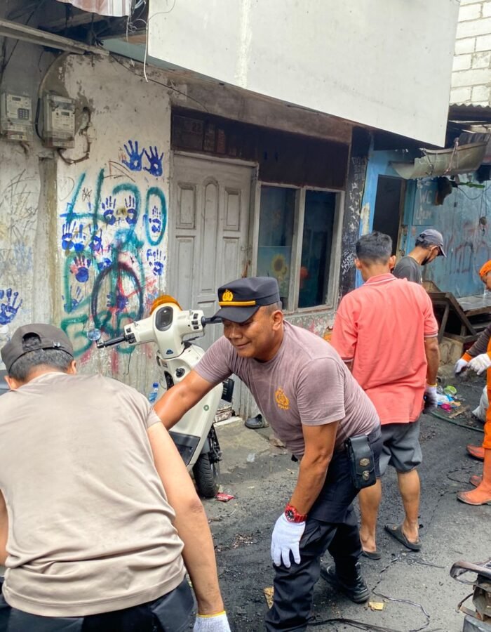 Ratusan personel dari unsur 3 Pilar Kecamatan Tambora bersama berbagai instansi turun langsung melakukan kerja bakti massal di lokasi kebakaran yang terjadi beberapa hari sebelumnya.