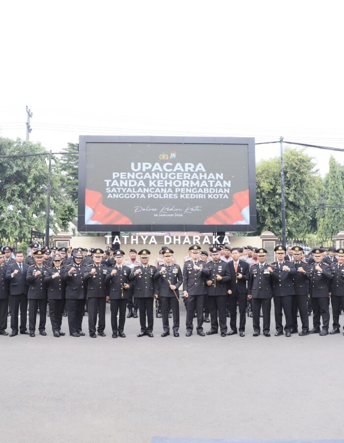 BATAVIAINEWS.COM Kediri Kota – Kapolres Kediri Kota AKBP Anggi Saputra Ibrahim, S.H., S.I.K., M.H. memimpin Upacara Penganugerahan Tanda Kehormatan Satyalancana Pengabdian bagi anggota Polres Kediri Kota. Kegiatan berlangsung di Halaman Apel Mako Polres Kediri Kota, Jalan KDP Slamet No. 2, Kota Kediri, Senin (26/1).