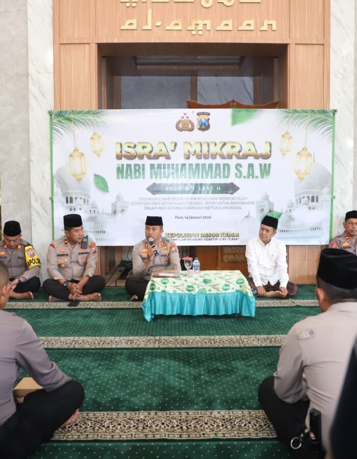 Sementara Kapolres Kediri menyampaikan bahwa peringatan Isra’ Mi’raj menjadi pengingat penting bagi seluruh personel Polri untuk terus menjaga keseimbangan antara profesionalitas dan spiritualitas.