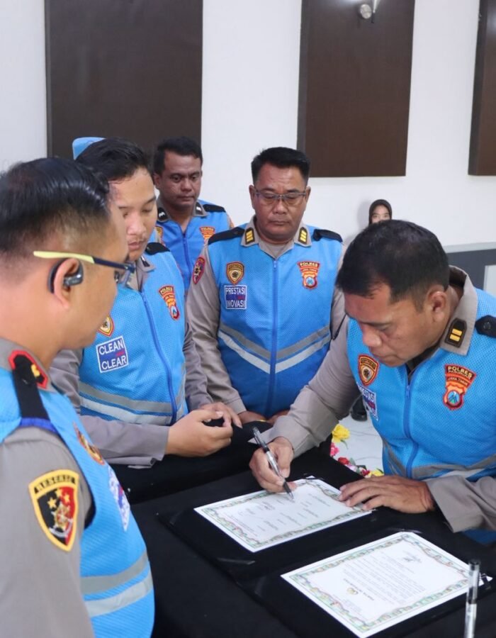 Kegiatan penandatanganan fakta integritas digelar secara serentak melalui Zoom dan diikuti seluruh jajaran Polres se-Jawa Timur dari wilayah masing-masing.