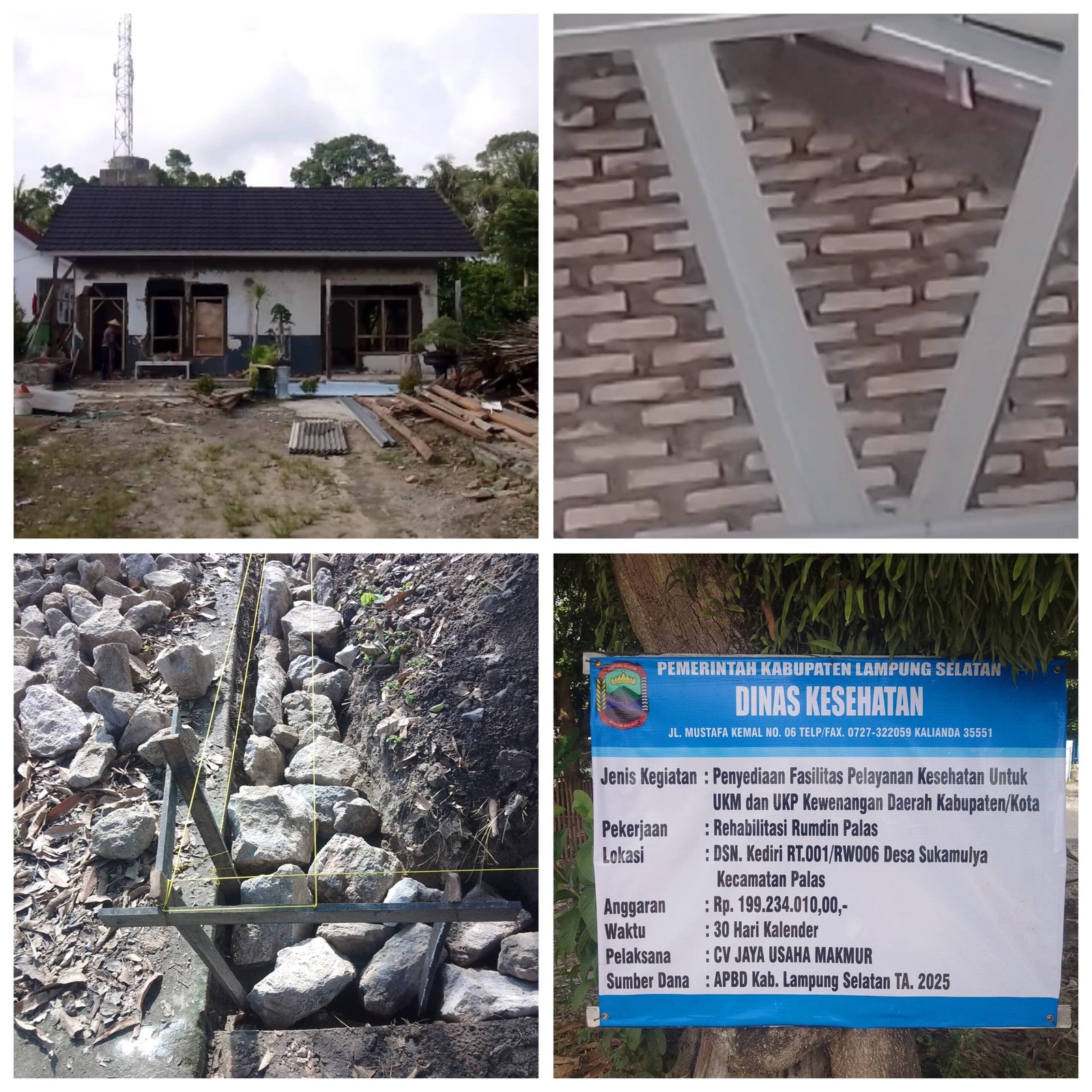 BATAVIAINEWS.COM Lampung Selatan – Penyediaan fasilitas pelayanan kesehatan ,Rehabilitasi rumah Dinas Puskesmas palas,jalan Kediri RT 001 RW 006 Desa sukamulya kecamatan palas yang bernilai