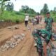 Di bawah terik matahari pagi yang hangat, tampak para prajurit TNI dengan semangat pantang menyerah bekerja bergotong royong bersama masyarakat. Mereka bahu-membahu menata batu kali dan meratakan badan jalan agar hasil pekerjaan nantinya kokoh dan dapat dilalui kendaraan dengan aman serta nyaman. Semangat kebersamaan antara TNI dan warga menjadi pemandangan yang penuh makna, menggambarkan kuatnya sinergi antara aparat pertahanan dengan rakyat dalam mewujudkan pembangunan desa.