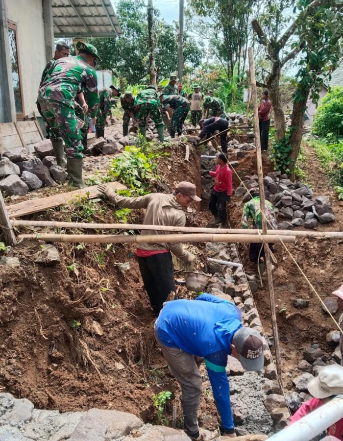 BATAVIAINEWS.COM Wonogiri – Salah satu wujud nyata kemanunggalan TNI dengan rakyat dalam mendukung percepatan pembangunan di wilayah pedesaan. Melalui program ini, TNI bersama masyarakat terus bergotong royong membangun sarana dan prasarana yang bermanfaat bagi peningkatan kesejahteraan warga.