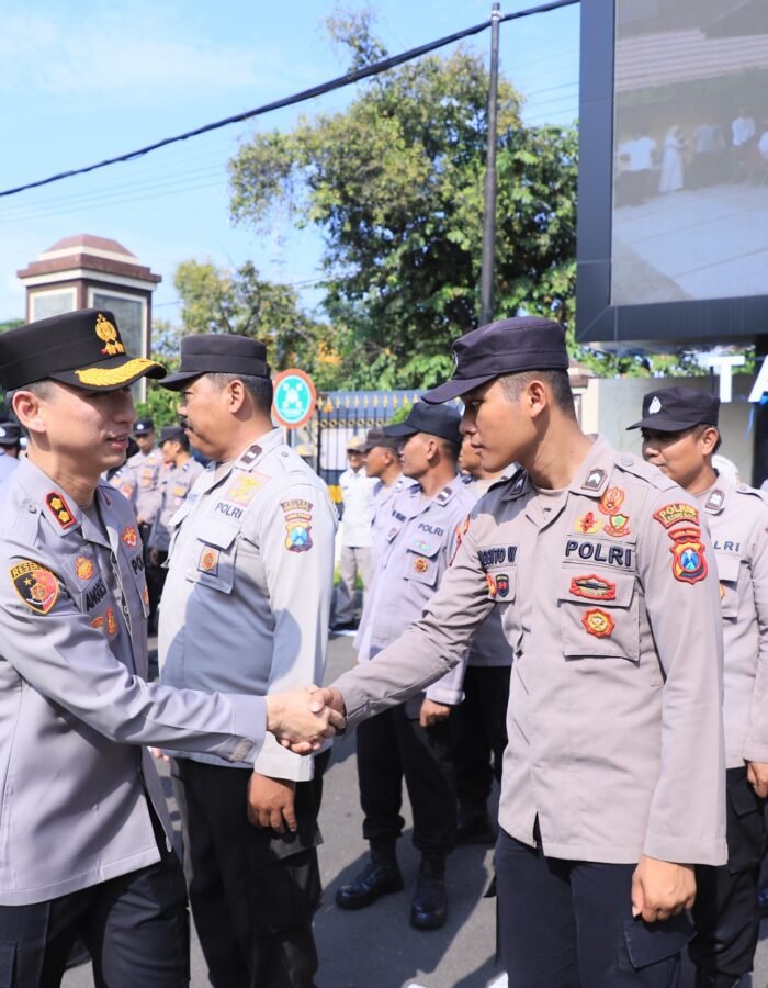BATAVIAINEWS.COM Kediri Kota – Polres Kediri Kota menggelar apel pagi jam pimpinan yang dilanjutkan dengan kegiatan Halal Bihalal di halaman apel Mako Polres Kediri Kota, Kamis (2/4/2026). Kegiatan ini menjadi momentum memperkuat soliditas internal sekaligus meningkatkan kesiapsiagaan personel dalam menghadapi berbagai agenda pengamanan ke depan.
