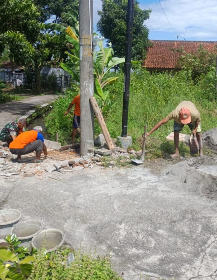 BATAVIAINEWS.COM Boyolali – Wujud kepedulian terhadap lingkungan dan kesejahteraan masyarakat, Babinsa Koramil 08/Banyudono Kodim 0724/Boyolali Peltu Nurdin bersama warga melaksanakan kegiatan gotong royong perbaikan dan pengecoran jalan rusak di Dukuh Jatisari, Desa Sambon, Kecamatan Banyudono, Kabupaten Boyolali, Jumat (02/01/2026).