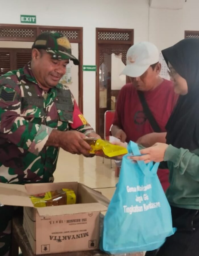 BATAVIAINEWS.COM Surakarta – Babinsa Kelurahan Joyotakan Koramil 03/Serengan Kodim 0735/Surakarta Serma Rumbawa membantu pengamanan pendistribusian beras dan minyak goreng dari bulog bertempat di aula Kelurahan Joyotakan Kecamatan Serengan Kota Surakarta,19/11/2025