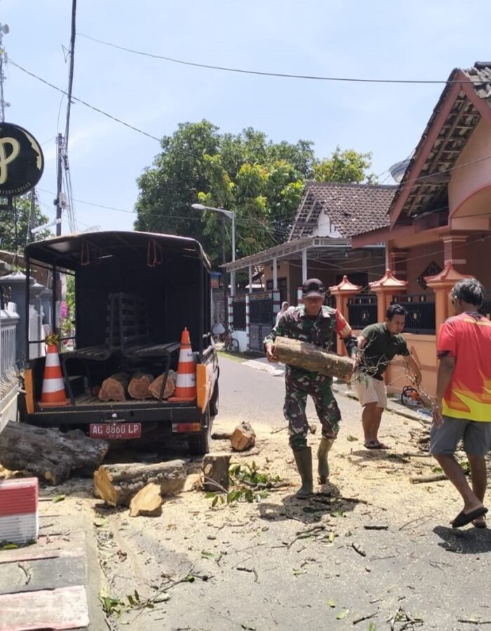 Untuk menangani kejadian tersebut, Babinsa berkoordinasi dengan pihak terkait. Tak lama kemudian, personel BPBD Kota Blitar datang ke lokasi untuk melaksanakan pembersihan pohon tumbang, yang dilakukan bersama Babinsa dan dibantu oleh warga sekitar secara gotong royong.