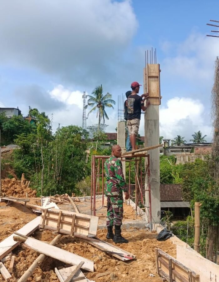 Salah satunya terlihat saat Serda Dhony, Babinsa setempat, tanpa ragu memegang alat plamir untuk menghaluskan tembok bangunan KDKMP. Kehadirannya di tengah warga bukan sekadar membantu tenaga, namun juga menjadi motor penggerak semangat gotong royong di desa binaannya.