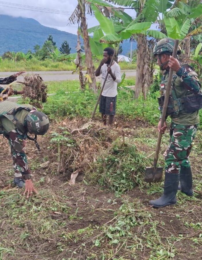 BATAVIAINEWS.COM Kobakma, — Dalam upaya meningkatkan kesejahteraan masyarakat sekaligus menumbuhkan semangat bertani, Satgas Yonif 521/DY melaksanakan kegiatan penyiapan lahan pertanian bersama warga di Distrik Kobakma, Kabupaten Mamberamo Tengah, Papua Pegunungan. (12/4/2026).