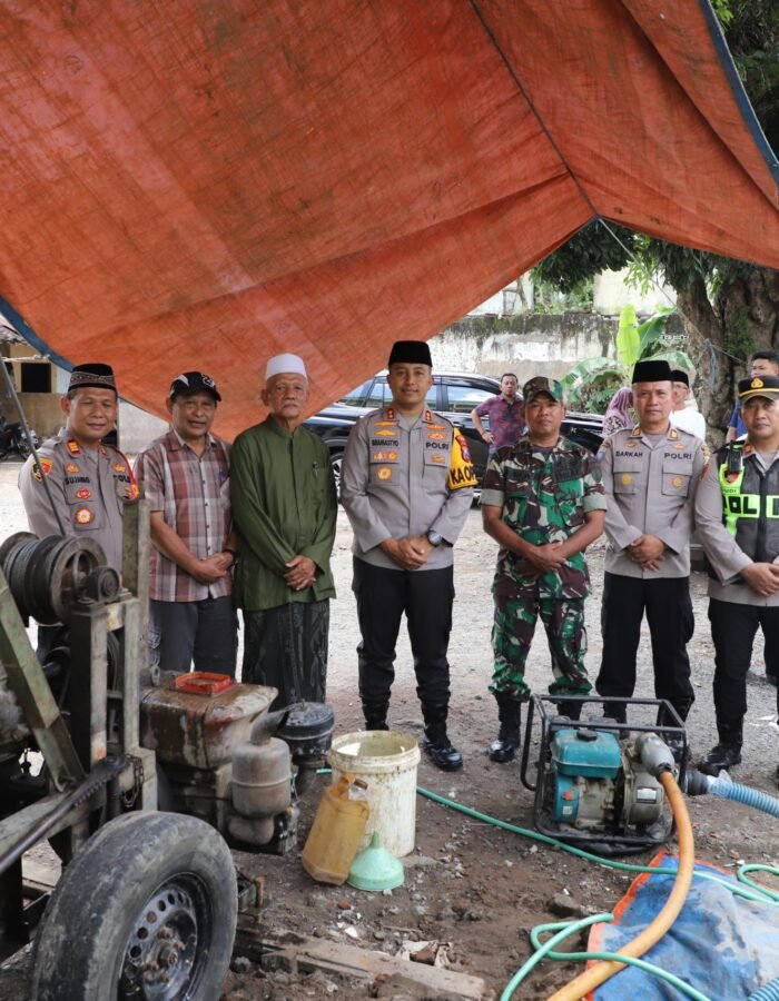 Polres Kediri Polda Jatim menyerahkan bantuan sumur bor lengkap dengan pompa air untuk Masjid Al Huda, Jumat (6/3/2026). Fasilitas tersebut nantinya akan dimanfaatkan oleh jamaah masjid sekaligus masyarakat di sekitar lingkungan masjid.