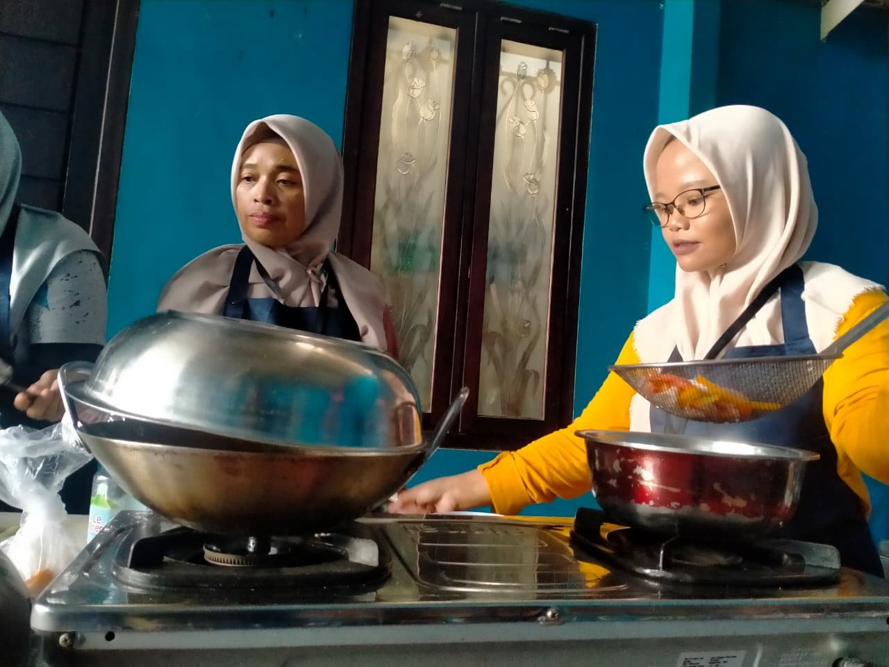 Namun, pelatihan ini tidak berhenti pada urusan memasak. Di sela kegiatan, para peserta saling bertukar cerita tentang keluarga, anak, dan keseharian mereka.