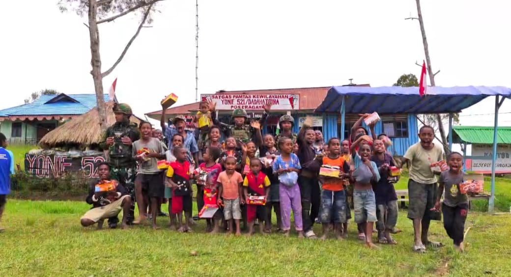 Dalam semangat kemanusiaan dan kepedulian terhadap sesama, Satgas Yonif 521/DY melalui Pos Eragayam menggelar aksi berbagi kasih dengan membagikan makanan siap saji kepada anak anak di distrik Eragayam, Kab. Mamberamo Tengah Papua Pegunungan (23/10/2025).