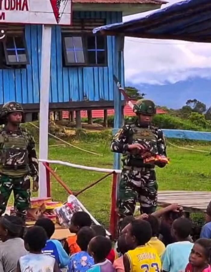 Berbagi Kasih di Ujung Timur Negri Satgas Yonif 521/DY Bersama Anak-Anak Papua