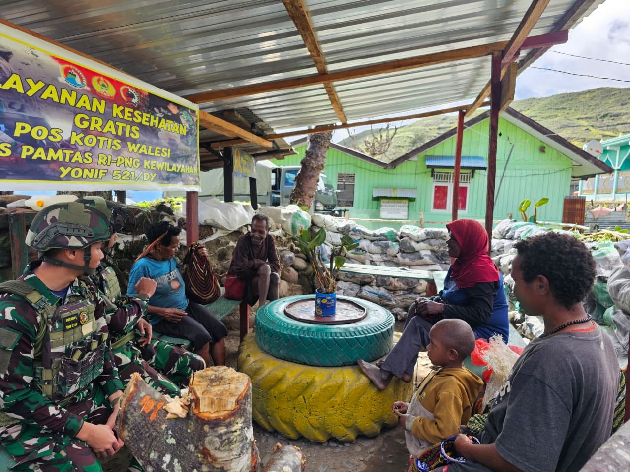 Berbagi Senyum Satgas Yonif 521/DY di Pos TNI