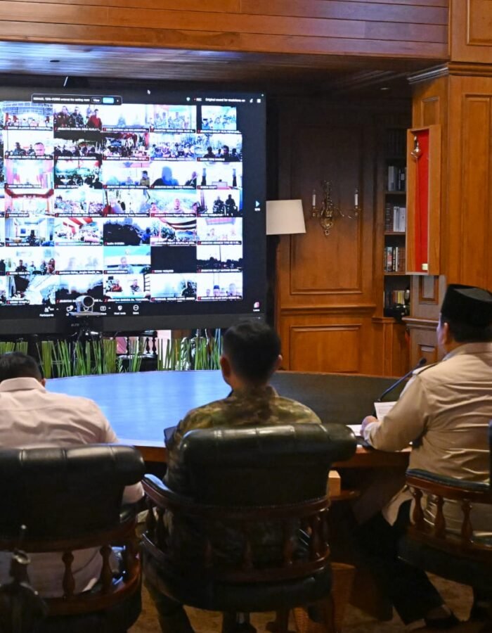 BATAVIAINEWS.COM (Puspen TNI). Panglima TNI Jenderal TNI Agus Subiyanto bersama Menteri Pertahanan RI Sjafrie Sjamsoeddin dan Wapang TNI Jenderal TNI Tandyo Budi R mendampingi Presiden RI Prabowo Subianto meresmikan 218 jembatan yang tersebar di berbagai wilayah Indonesia melalui video conference dari kediaman Presiden RI di Hambalang, Bogor. Senin (9/3/2026).