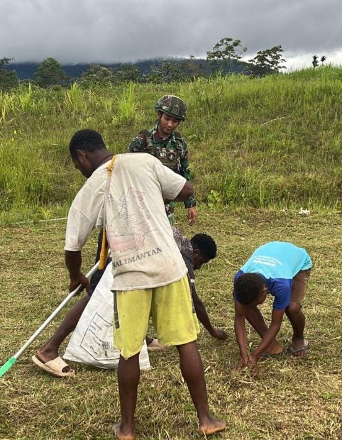 BATAVIAINEWS.COM Kobakma, – Dalam upaya mempererat kebersamaan serta menumbuhkan semangat gotong royong di tengah masyarakat, Satgas Yonif 521/DY bersama generasi muda melaksanakan kegiatan karya bakti pembersihan lapangan sepak bola di Distrik Kobakma, Kabupaten Mamberamo Tengah, Papua Pegunungan. (23/4).
