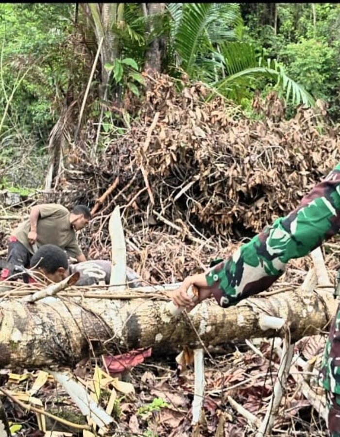BATAVIAINEWS.COM Muaranawa, – Wujud nyata kemanunggalan TNI dengan rakyat kembali ditunjukkan oleh Satgas Yonif 521/DY Pamtas Kewilayahan melalui kegiatan karya bakti bersama masyarakat di Kampung Muaranawa, Distrik Airu, Kabupaten Jayapura. (21/4/2026).