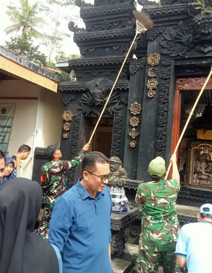Danramil 05/Ampel Kodim 0724/Boyolali Kapten Arh Eko Yanu P bersama jajaran Forkopimcam Ampel turut mendampingi Wakil Bupati Boyolali, Ibu Dwi Fajar Nirvana, dalam kegiatan kerja bakti membersihkan area pura. Kegiatan tersebut melibatkan berbagai elemen masyarakat, mulai dari TNI, Polri, Karang Taruna, relawan, hingga warga setempat.