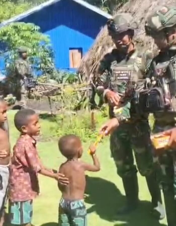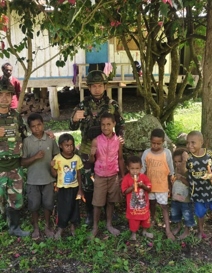 Makanan seperti kue bukan sekedar santapan, melainkan simbol persaudaraan, Personel TNI bersama anak Papua saling tegur sapa canda dan tawa, Anak-anak terlihat riang, dan berbagi cerita di tengah tawa ringan yang mengalir.