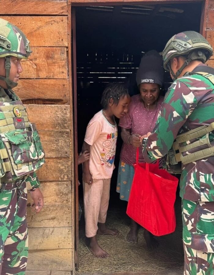 Konsistensi dalam membantu kesulitan masyarakat di wilayah penugasan terus ditunjukkan oleh Satgas Yonif 521/DY Pos Bolakme melaksanakan aksi kemanusiaan dengan mendatangi langsung rumah-rumah warga (door-to-door) untuk membagikan paket sembako sekaligus memberikan pelayanan pengobatan gratis.