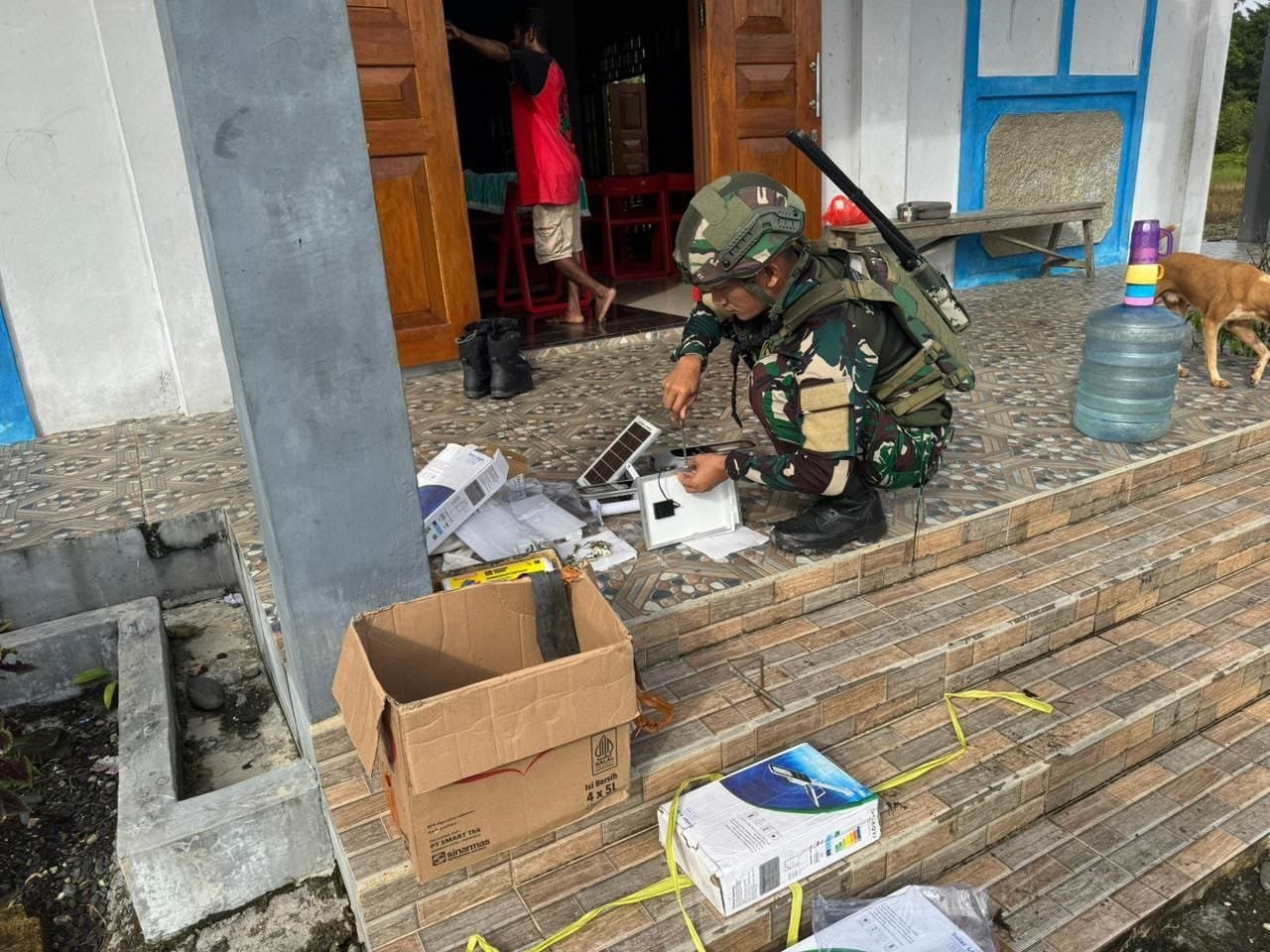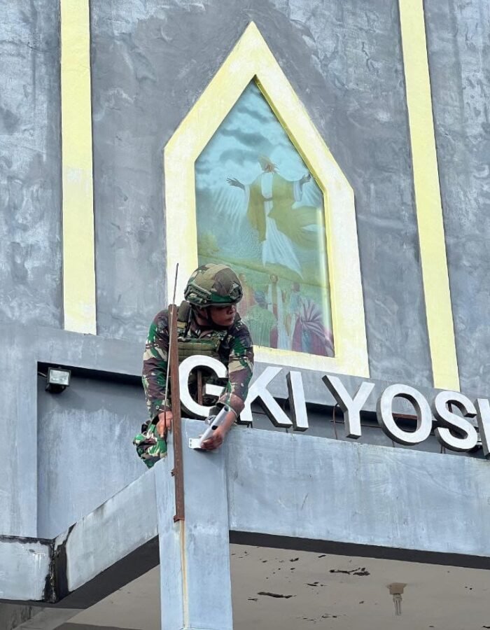 Satgas Yonif 521/DY Pos Benawa melaksanakan kegiatan pemasangan lampu di Gereja GKI Yoska Yudea, Distrik Benawa, Kabupaten Yalimo, Provinsi Papua Pegunungan. (15/1/2025)
