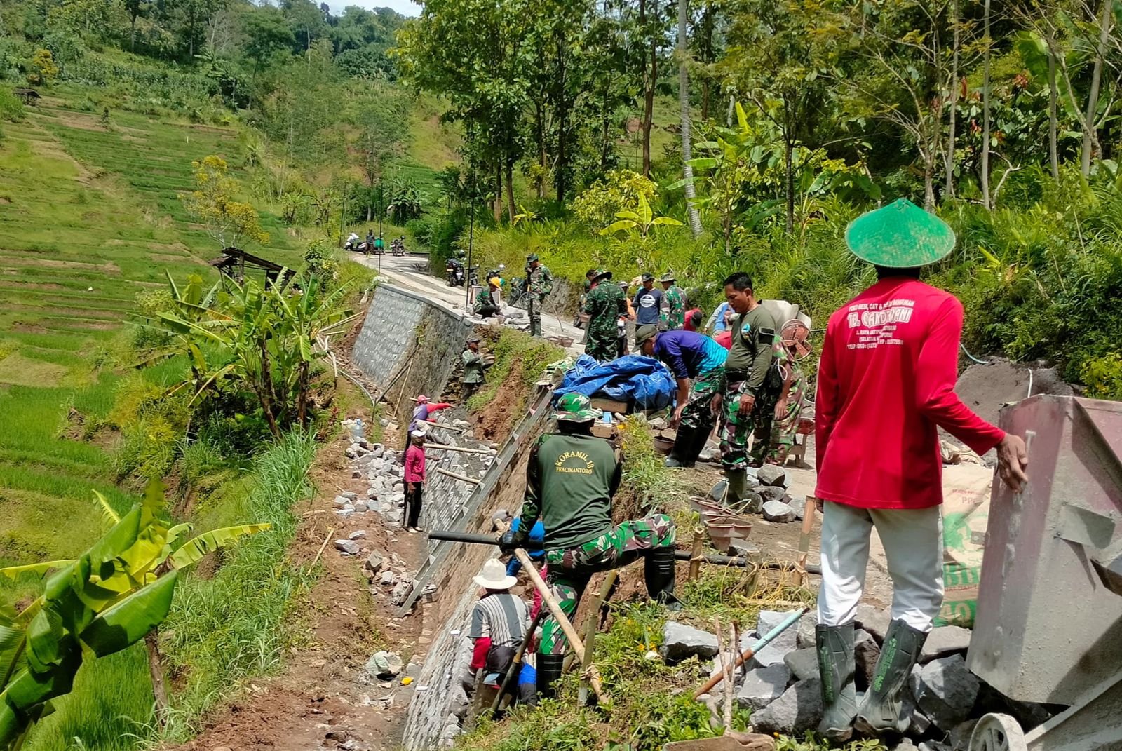 BATAVIAINEWS.COM Wonogiri – Melihat Prajurit TNI memegang cangkul, sekop bahkan angkong di lokasi pembangunan badan jalan di pelosok desa, apa yang terlintas di benak anda?