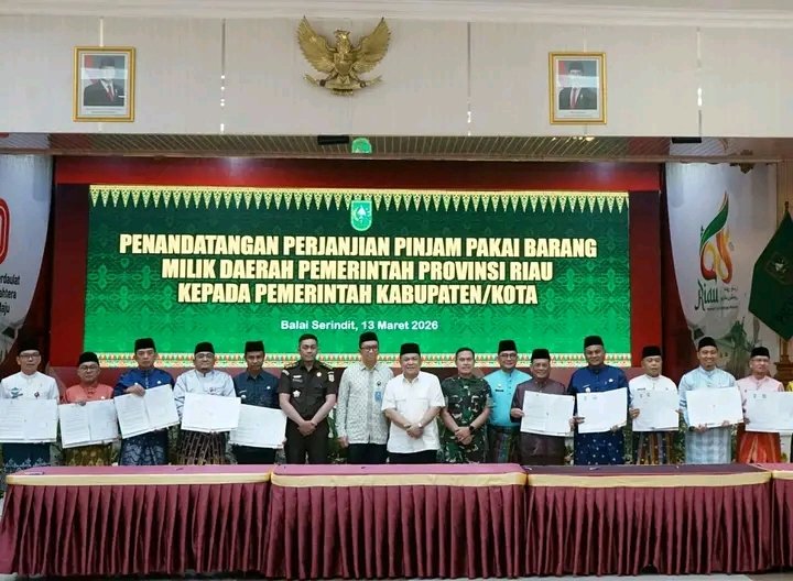 BATAVIAINEWS.COM PEKANBARU – Bupati Kepulauan Meranti, H. Asmar, menghadiri secara langsung kegiatan penandatanganan Perjanjian Pinjam Pakai Barang Milik Daerah Pemerintah Provinsi Riau kepada pemerintah kabupaten/kota se-Provinsi Riau. Acara tersebut digelar di Balai Serindit Pekanbaru, Jumat (13/03/2026).