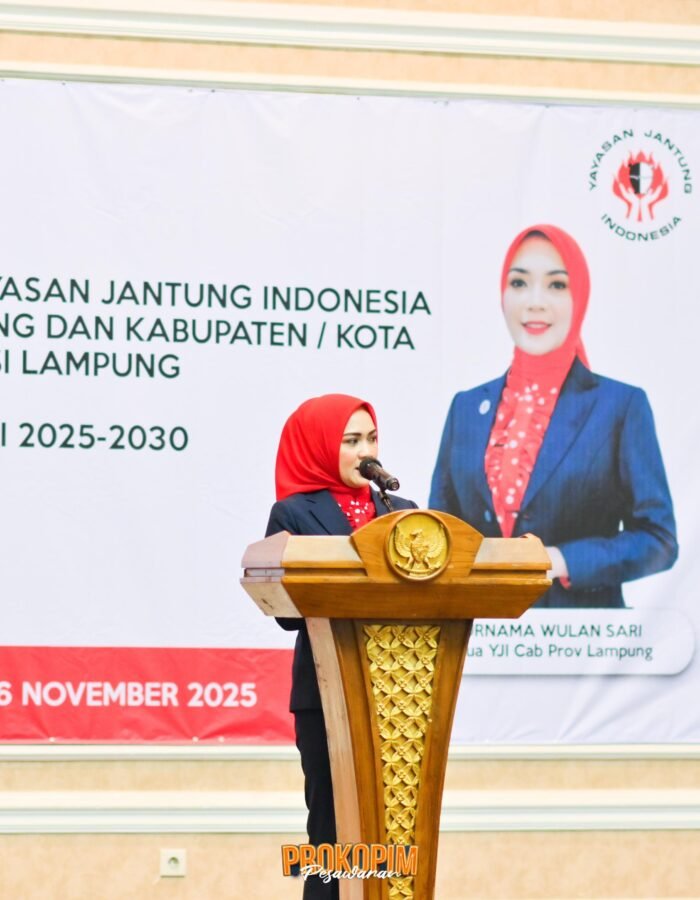 BATAVIAINEWS.COM Bandar Lampung – Bupati Pesawaran Hj. Nanda Indira B, S.E.,M.M. resmi dilantik sebagai Ketua Yayasan Jantung Indonesia (YJI) Cabang Pesawaran Masa Bakti 2025–2030. Pelantikan disaksikan langsung oleh Wakil Gubernur Lampung Jihan Nurlela, bersama jajaran pengurus YJI Provinsi dan Kabupaten/Kota se-Lampung di Balai Keratun, Komplek Kantor Gubernur Lampung, Rabu (26/11/2025).