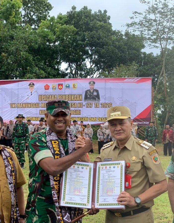 Bupati Wonogiri Setyo Sukarno secara resmi membuka Upacara Pembukaan TMMD Reguler Ke-127 Tahun 2026 bertempat di lapangan Desa Kembang Kecamatan Jatipurno, Selasa (10/2/2026).