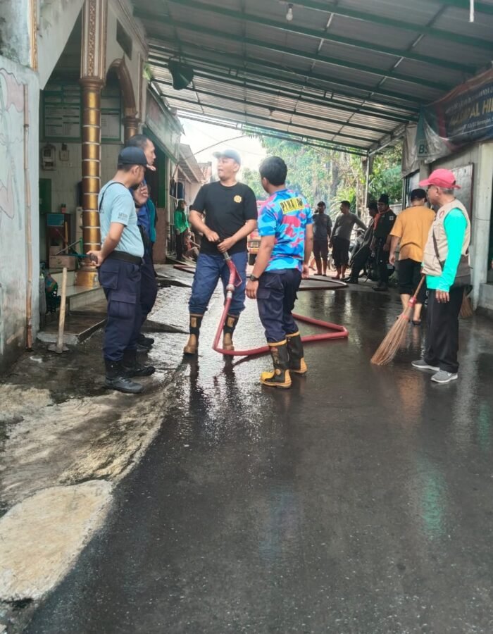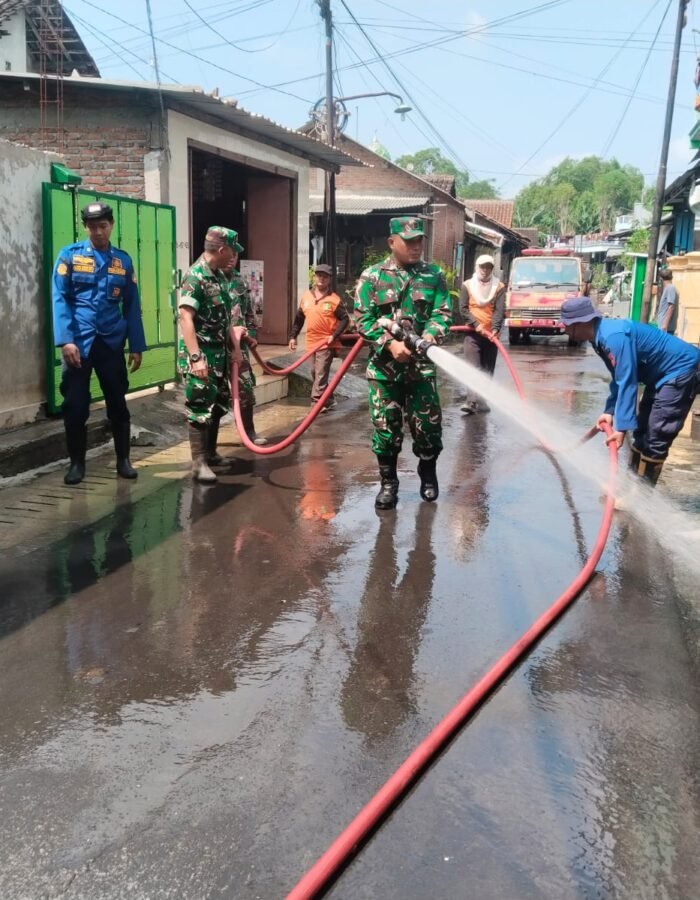 Dalam pelaksanaannya, seluruh personel dan warga bergotong royong membersihkan sisa material banjir menggunakan peralatan seperti, sapu, serta alat kebersihan lainnya dan melibatkan Damkar dari Kodim 0735 Surakarta dan BPBD Surakarta. Selain itu juga dilakukan pengangkutan sampah dan lumpur ke tempat pembuangan agar lingkungan kembali bersih dan sehat. Kehadiran relawan mahasiswa dan Kemenag turut membantu mempercepat proses pembersihan serta memberikan dukungan moril kepada masyarakat, Tambahnya