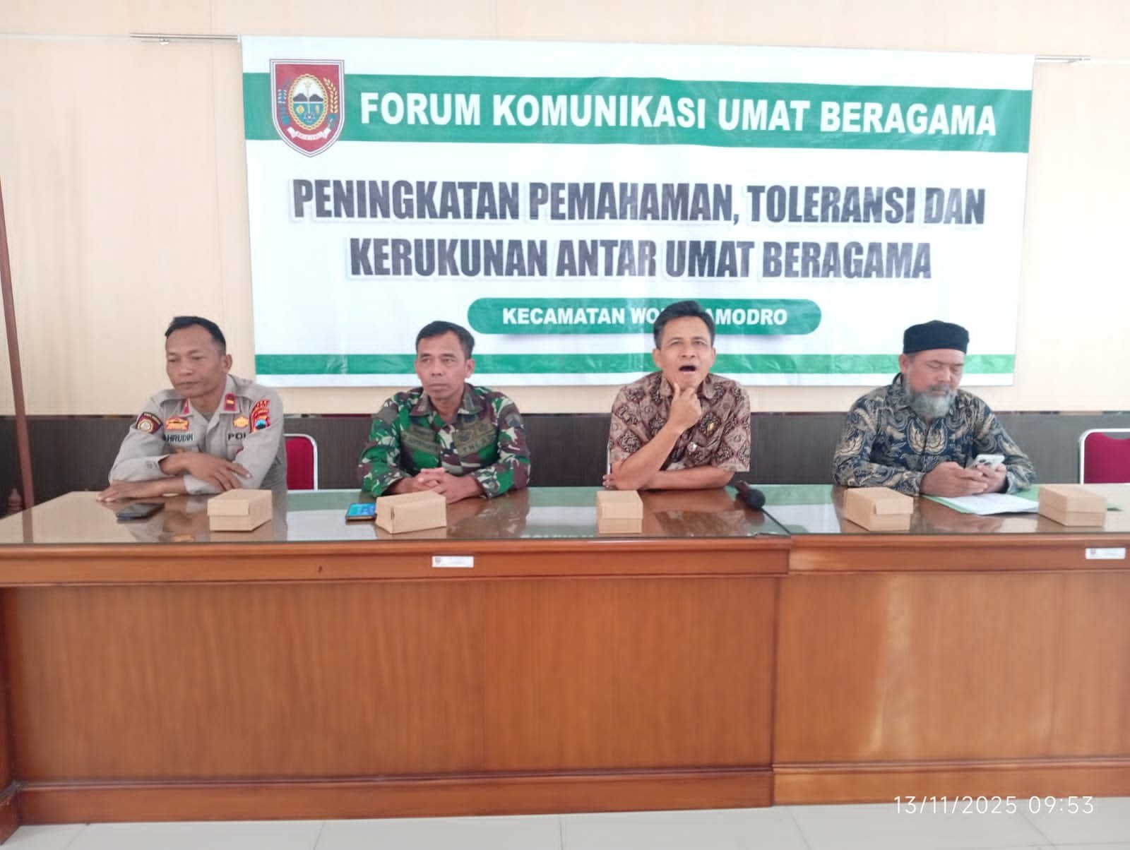 Boyolali,BATAVIAINEWS.COM – Upaya menjaga kerukunan antarumat beragama terus digencarkan di wilayah Kecamatan Wonosegoro. Hal ini terlihat dari kehadiran Danramil 17/Wonosegoro Kodim 0724/Boyolali, Kapten Inf Dwi Supriyanto, dalam kegiatan Sosialisasi dan Penyuluhan Forum Kerukunan Umat Beragama (FKUB) yang digelar di Aula Kecamatan Wonosegoro Kabupaten Boyolali, Jumat (14/11/25).