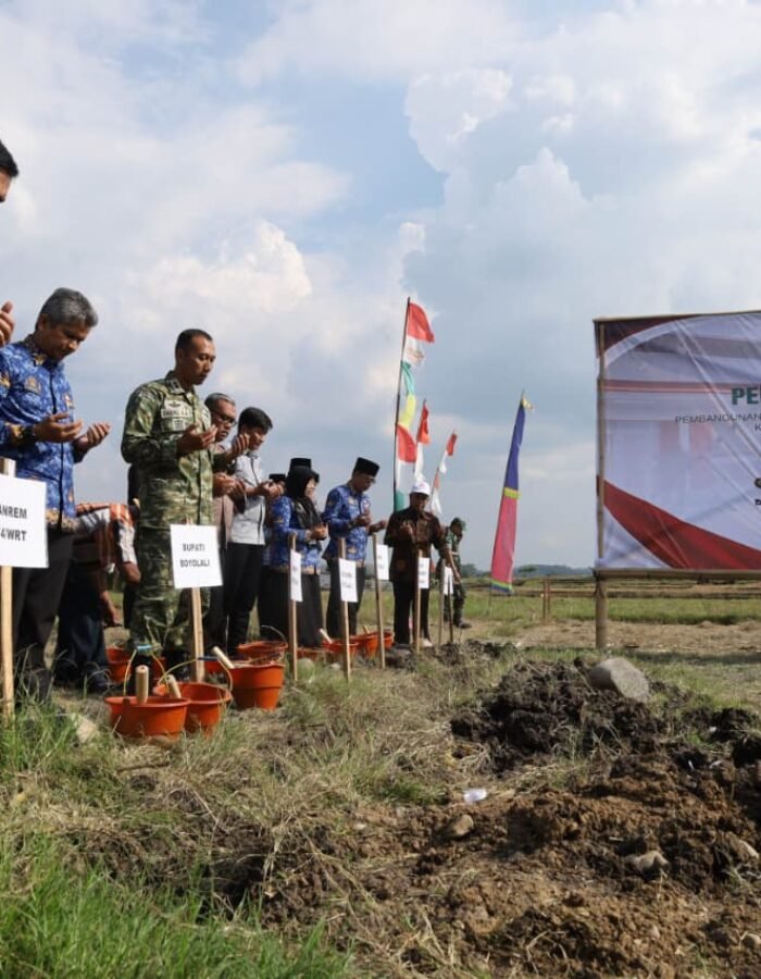 Bataviainews.com Boyolali – Danrem 074/Warastratama Kolonel Inf M. Arry Yudistira S.I.P, M.I.Pol.,M.Han. didampingi Dandim 0724/Boyolali Letkol Inf Dhanu Anggoro Asmoro, S.E. dalam kegiatan groundbreaking (peletakan batu pertama) pembangunan Koperasi Merah Putih (KMP) di Desa Bandung, Kecamatan Wonosegoro, Kabupaten Boyolali, Jumat (17/10/2025).
