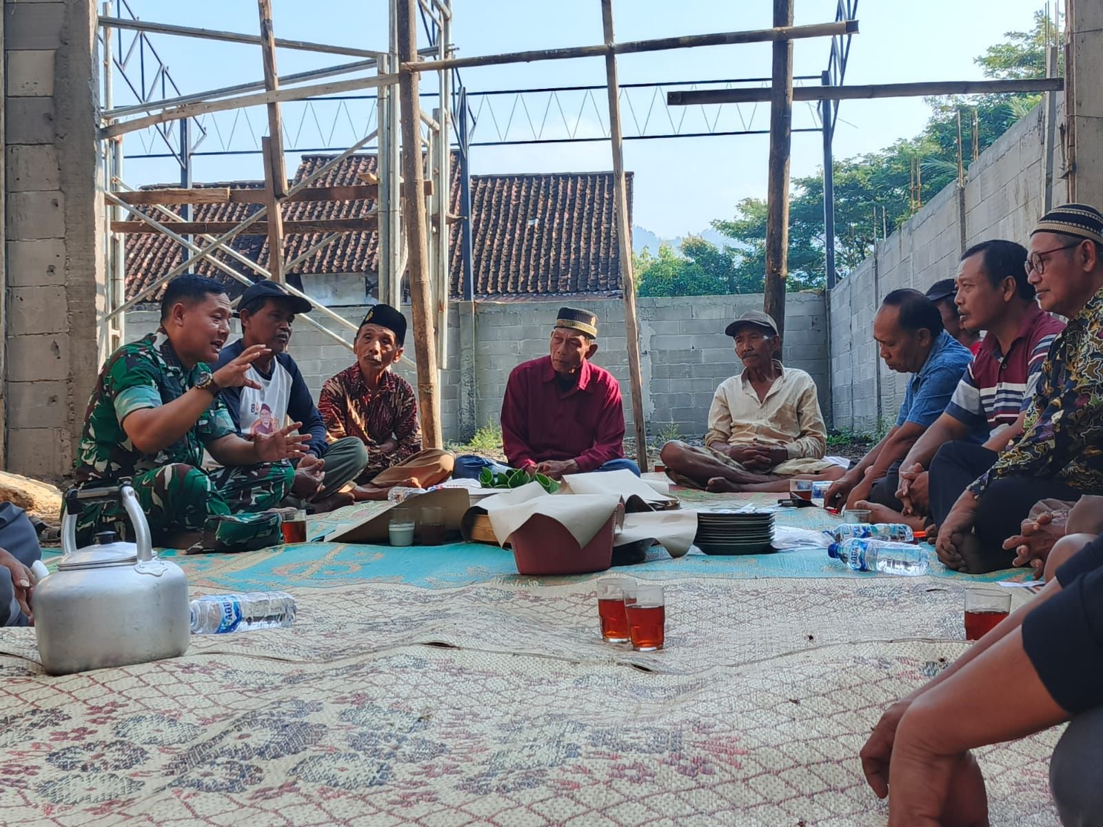 Usai doa bersama dan syukuran kegiatan dilanjutkan dengan pengerjaan gedung yang dilakukan secara bergotong royong baik oleh perangkat desa, warga termasuk Babinsa.