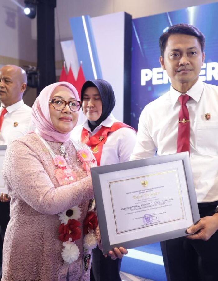 Penghargaan tersebut diberikan dalam rangkaian kegiatan seminar nasional bertajuk Membangun Kesadaran dan Aksi Nyata Menghapus Kekerasan Seksual Berbasis Relasi Kuasa yang digelar Polda Jatim di Surabaya,Senin (27/4/26).