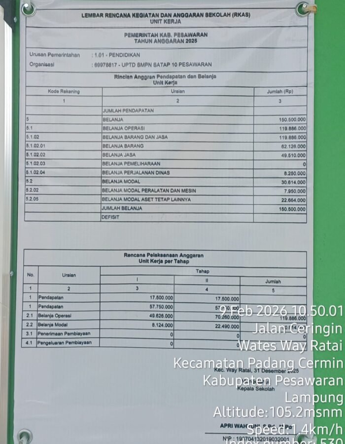 BATAVIAINEWS.COM Way Ratai, Pesawaran —Rabu(11 Pebruari 2026) Dugaan kejanggalan dalam Surat Pertanggungjawaban (SPJ) atas nama Apri Wahyuni di SMP Satu Atap (Satap) 10 Waratai, Kecamatan Way Ratai, Kabupaten Pesawaran, kini menjadi perhatian publik.