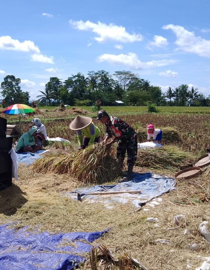BATAVIAINEWS.COM Blitar – Babinsa Desa Slumbung Koramil 0808/15 Gandusari Kopda Nurul Huda aktif mendampingi dan membantu petani dalam kegiatan panen padi sebagai wujud dukungan terhadap program swasembada pangan nasional. Kegiatan tersebut merupakan bagian dari pendampingan program Hanpangan untuk mendampingi para petani yang dilaksanakan di wilayah binaan.