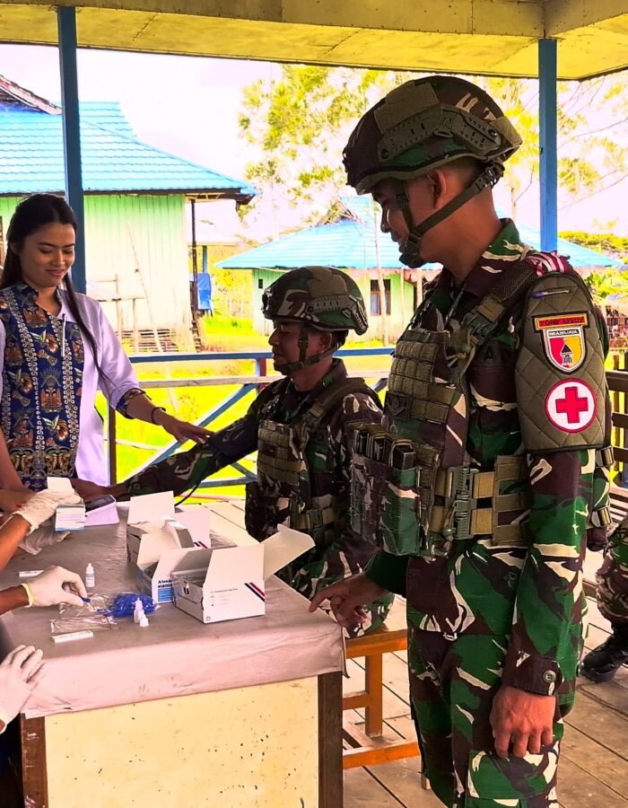 “Kegiatan pemeriksaan malaria ini dilaksanakan oleh Personel anggota pos Eragayam bekerja sama dengan Petugas kesehatan dari Puskesmas Eragayam, personel pos satgas, kepala desa, Bidan desa dan dinas kesehatan dari Kab. Mamberamo Tengah”. (1 November 2025).