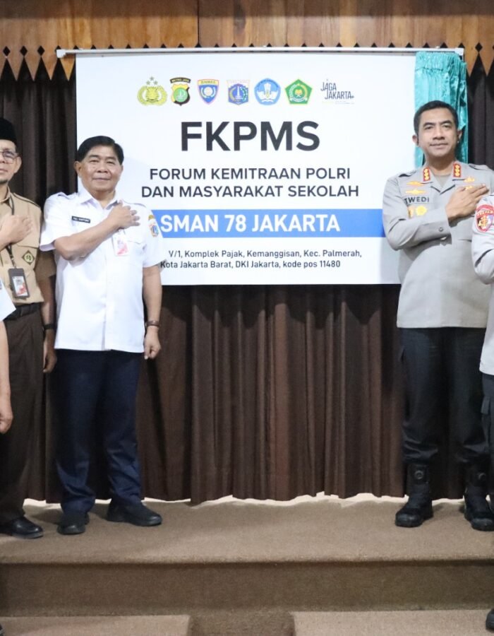 BATAVIAINEWS.COM Jakarta Barat, Dalam upaya memperkuat sinergi antara kepolisian, pihak sekolah, dan masyarakat dalam menjaga keamanan lingkungan pendidikan, Kapolres Metro Jakarta Barat Kombes Pol Twedi Aditya Bennyahdi, S.Sos., S.I.K., M.Si., bersama jajaran Pejabat Utama Polres Metro Jakarta Barat menghadiri kegiatan Launching Forum Komunikasi Polisi dan Masyarakat Sekolah (FKPMS) yang digelar di Aula Lantai 2 SMAN 78 Jakarta, Rabu (11/3/2026).