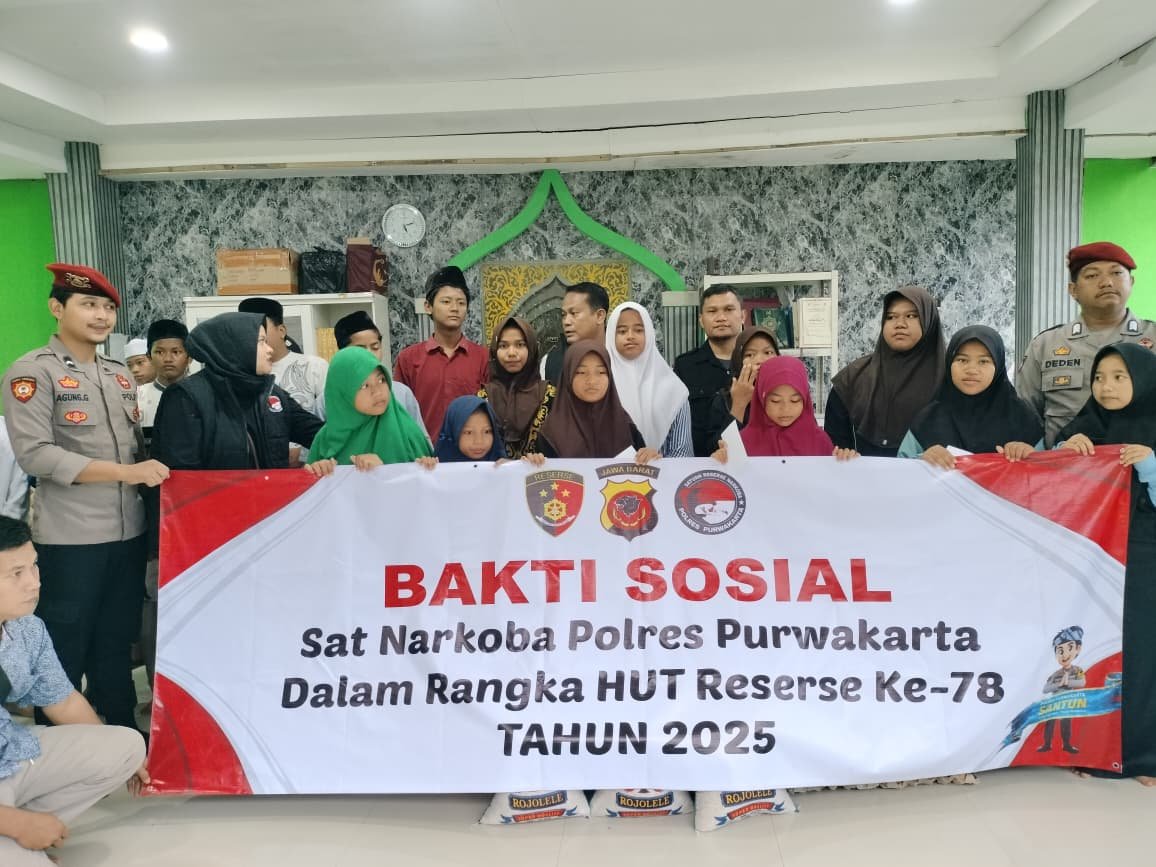 PURWAKARTA –BATAVIAINEWS.COM- Dalam rangka memperingati Hari Jadi Reserse Polri ke-78, Polres Purwakarta melalui Satuan Reserse Narkoba (Sat Res Narkoba) melaksanakan kegiatan bakti sosial di Yayasan Insan Cita Al Firdaus yang berlokasi di Kampung Jatimekar, Desa Cihuni, Kecamatan Pasawahan, Kabupaten Purwakarta.