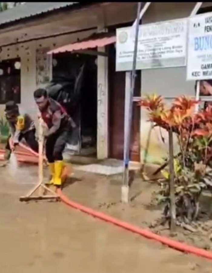 Meureudu – BATAVIAINEWS.COM-Polres Pidie Jaya bersama masyarakat melaksanakan kegiatan gotong royong dalam rangka pemulihan pascabencana banjir di wilayah hukum Polres Pidie Jaya, Jumat 2 Januari 2026. Kegiatan ini merupakan bentuk sinergi Polri dan masyarakat guna mempercepat pemulihan fasilitas umum, lingkungan, serta sarana pendidikan yang terdampak banjir.