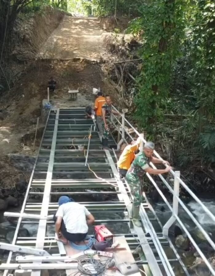 Gotong Royong TNI Dan Warga, Pengelasan Besi Pengaman Jembatan Perintis Garuda Terus Dikebut