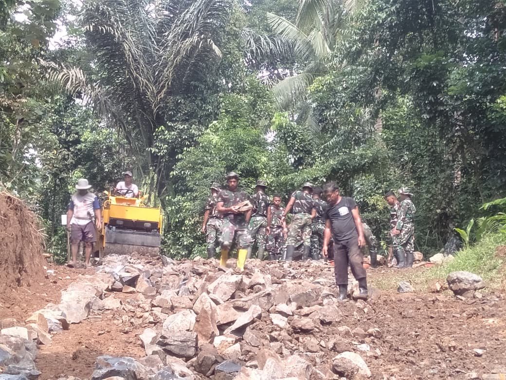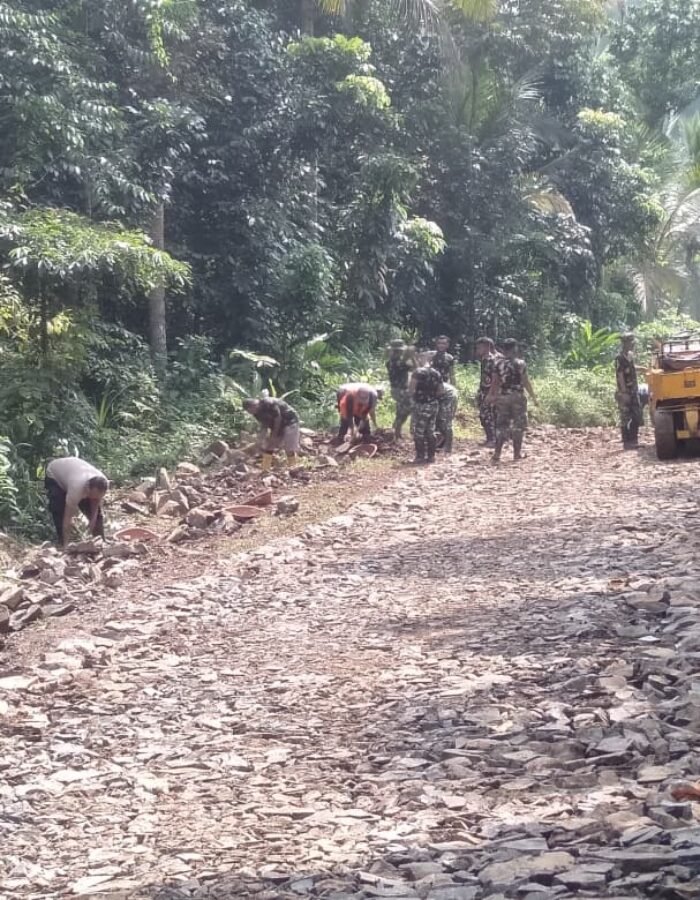 Bataviainews.com PANDEGLANG – Memasuki hari ke-12 pelaksanaan TNI Manunggal Membangun Desa (TMMD) ke-126 Tahun 2025, anggota Satgas TMMD Kodim 0601/Pandeglang terus menunjukkan semangat juang yang tinggi dalam melaksanakan program fisik di Desa Cikentrung, Kecamatan Cadasari, Kabupaten Pandeglang. Salah satu sasaran utama yang kini menjadi fokus utama adalah pengerasan jalan penghubung antar kampung yang telah mencapai progres pekerjaan sebesar 54 persen.(21 Oktober 2025)