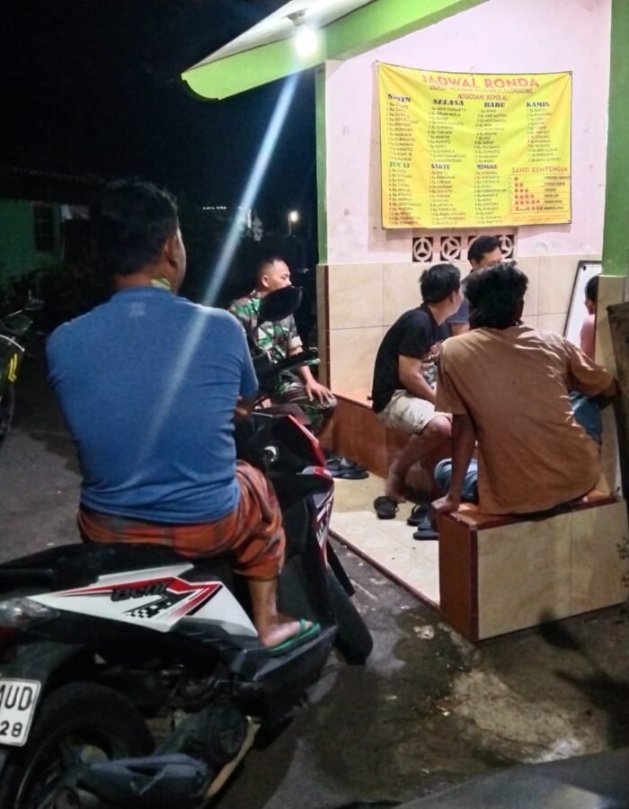 BATAVIAINEWS.COM Boyolali – Upaya menciptakan lingkungan yang aman dan nyaman terTAus dilakukan oleh aparat kewilayahan. Seperti yang dilakukan BabinVsa Koramil 13/Nogosari Kodim 0724/Boyolali, Serka Wahyono, yang turun langsung melaksanakan kegiatan siskamling bersama warga di Dukuh Rejosari, Desa Glonggong, Kecamatan Nogosari, Kabupaten Boyolali, Jumat malam (27/03/26).