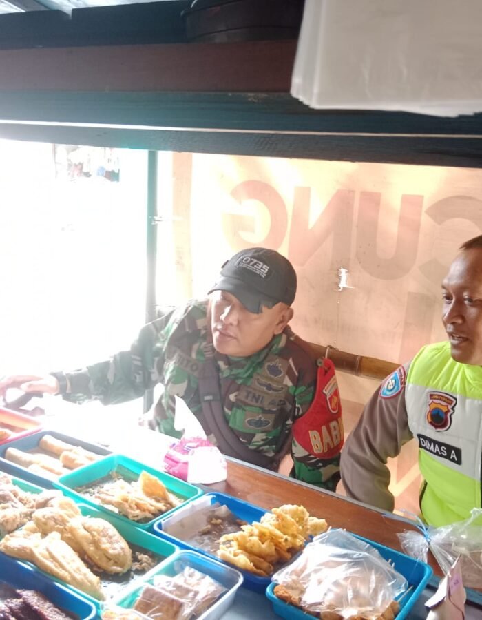 Surakarta,-BATAVIAINEWS.COM=Babinsa Danukusuman Koramil 03/Serengan Kodim 0735/Surakarta Serda Tito sedang berinteraksi dengan Bhabinkamtibmas dan Warga di wedangan Pak Kuncung Jl Pattimura Danukusuman Serengan Kota Surakarta, Selasa (13/01/2026)