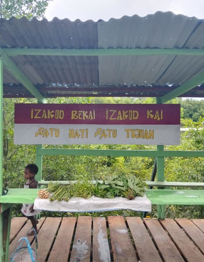 Pembangunan pasar yang dibangun secara gotong-royong antara Satgas TNI dan warga masyarakat sudah bisa digunakan dalam kegiatan berjualan sehari-hari.