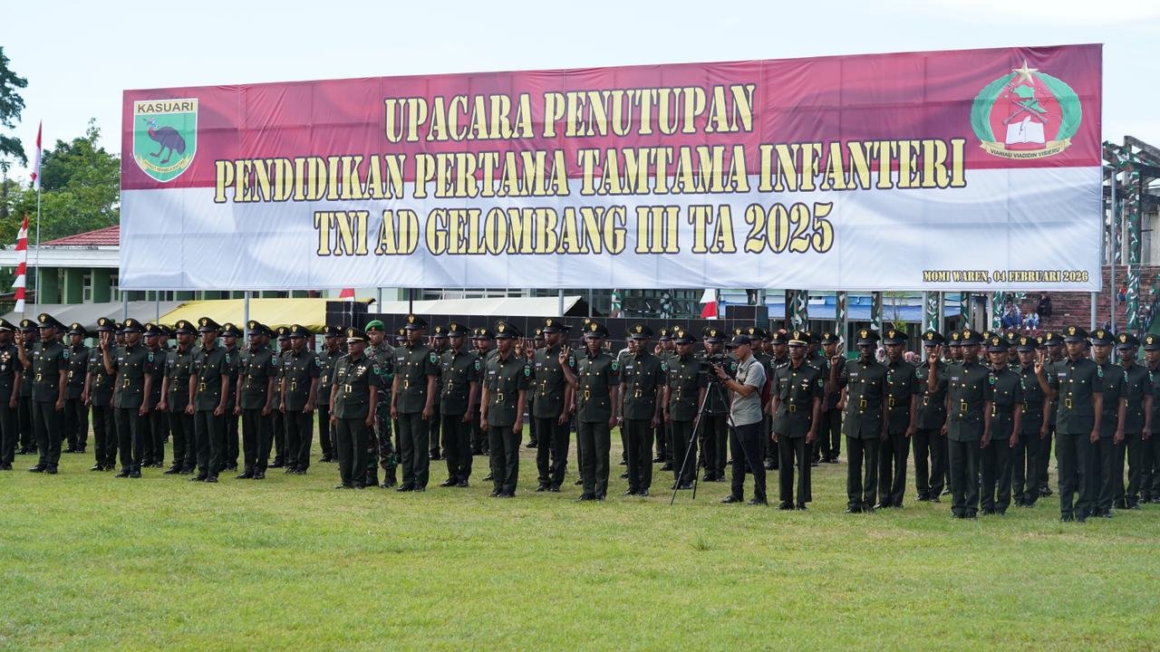 BATAVIAINEWS.COM MOMIWAREN – Prajurit Tamtama TNI AD yang disiapkan dalam Batalyon Teritorial Pembangunan (Yon TP) dibina sebagai kekuatan utama dengan kemampuan teritorial, fisik, dan mental yang tangguh. Hal tersebut disampaikan melalui amanat tertulis Kasad yang dibacakan oleh Irdam XVIII/Kasuari Brigjen TNI Tri Saktiyono pada upacara penutupan Pendidikan Pertama Tamtama TNI AD Gelombang III TA 2025 di Rindam XVIII/Kasuari, Momiwaren, Manokwari Selatan, Rabu (4/2/2026).