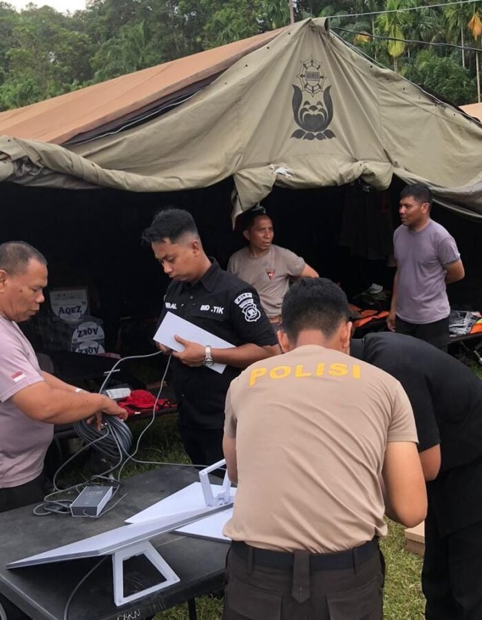 Jakarta, BATAVIAINEWS.COM — Di tengah jalan yang tertutup lumpur, jembatan patah, serta desa-desa yang terisolasi total, Polri setiap hari menerobos medan sulit demi satu tujuan: memastikan masyarakat bisa segera memberi kabar kepada keluarganya bahwa mereka selamat. Per 6 Desember 2025, Polri telah menempatkan 76 unit jaringan internet di wilayah terdampak banjir bandang dan longsor di Sumatra Barat, Sumatra Utara, dan Aceh. Jaringan ini menjadi tumpuan utama warga yang berhari-hari kehilangan sinyal dan akses komunikasi.