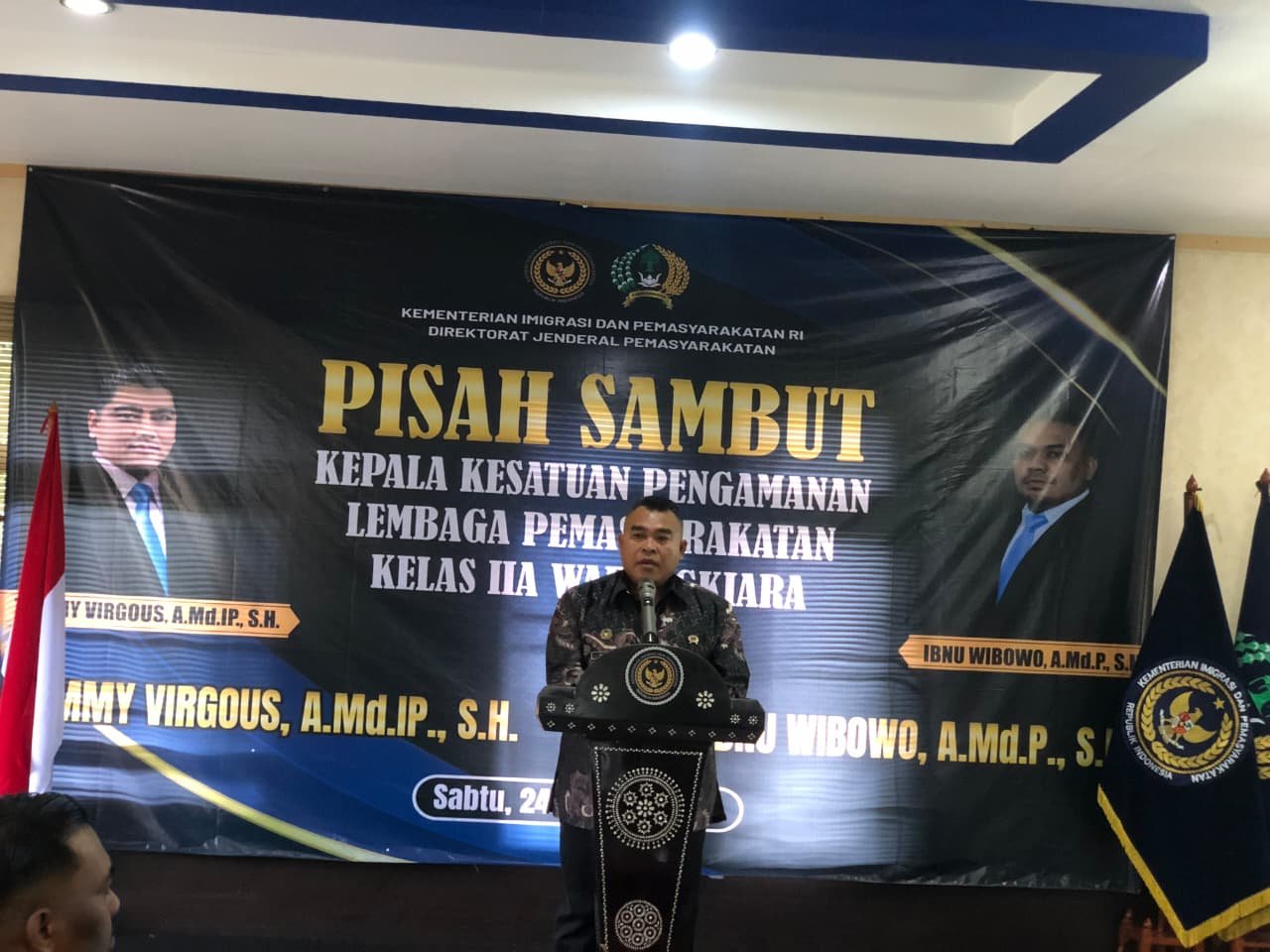 Dalam kesempatan tersebut, sambutan pertama disampaikan oleh Kepala Kesatuan Pengamanan Lapas yang alih tugas, Tommy Virgous A.Md.IP., S.H., yang menyampaikan rasa terima kasih atas dukungan dan kerja sama seluruh jajaran selama bertugas di Lapas Kelas IIA Warungkiara. Selanjutnya, Ibnu Wibowo A.Md.P., S.H. selaku Kepala Kesatuan Pengamanan Lapas yang baru, memperkenalkan diri dan menyatakan komitmennya untuk melaksanakan tugas dengan penuh tanggung jawab serta menjunjung tinggi profesionalisme dalam pengamanan dan pelayanan pemasyarakatan.