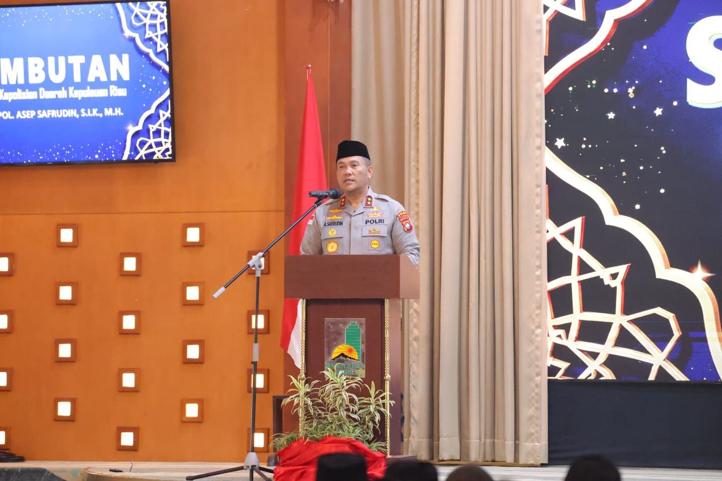 Dalam sambutannya, Kakanwil Kemenag Provinsi Kepri menyampaikan apresiasi atas peran Polri yang senantiasa hadir di tengah masyarakat dan bersinergi dengan tokoh agama dalam menjaga keamanan dan ketertiban masyarakat (kamtibmas).